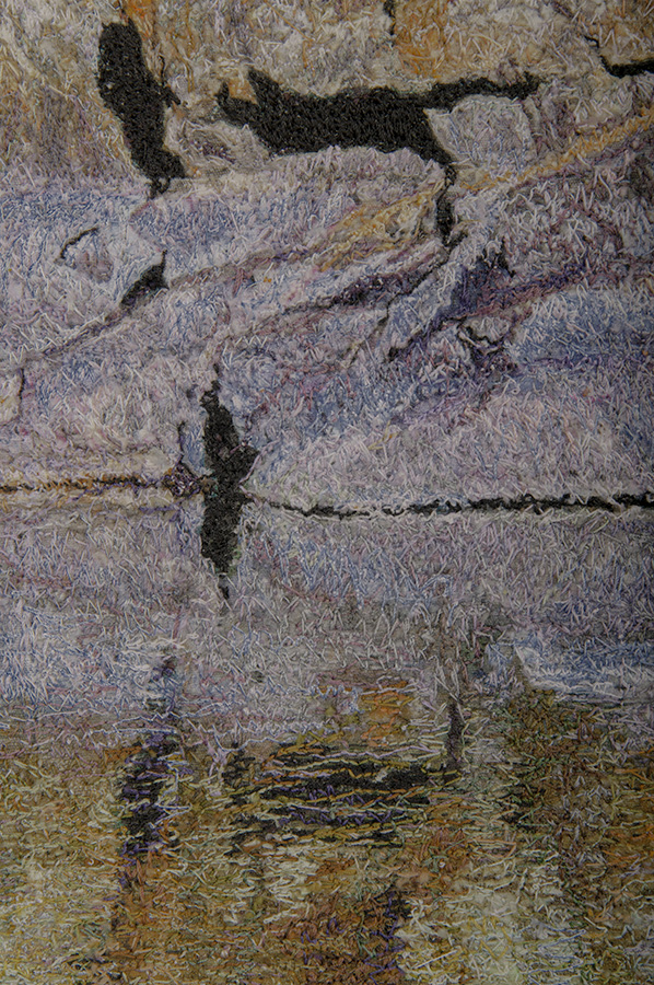 | Storm Approaching, 2021 Embroidery 19.25"h x 16"w, framed 26.25"h x 23" Sold: Duane Reed Gallery |