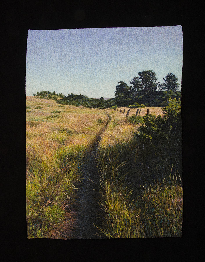| Trail up the Hill, 2023 Embroidery 20" x 13"w, framed 27"h x 20"w Sold: Duane Reed Gallery |