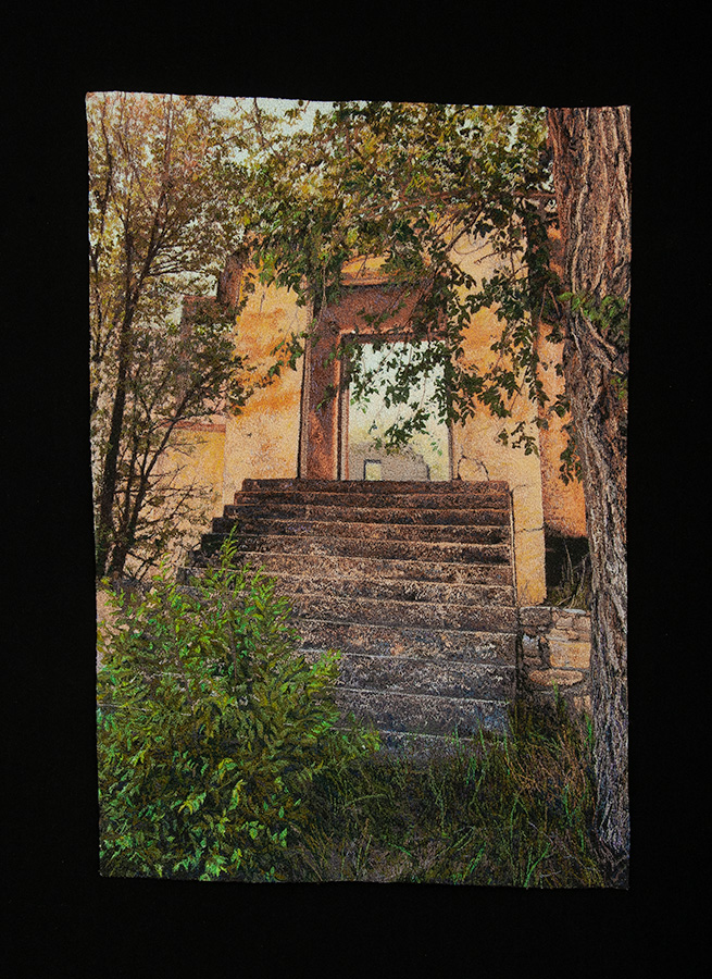| Old Stairs, 2023 Embroidery 20"h x 13.75"w, framed 27"h x 21"w Sold: Duane Reed Gallery |